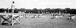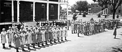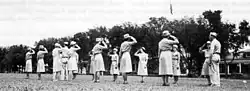 The WAAC was modeled after comparable British units, especially the Auxiliary Territorial Service (ATS), which caught the attention of Army Chief of Staff General George C. Marshall.[12][13] On May 16, 1942, Colonel Oveta Culp Hobby took oath as the director of WAAC.[14] The training of WAAC was conducted at Fort Des Moines Provisional Army Officer Training School.[15] In September to October 1942, field duties of the WAAC began.[16]