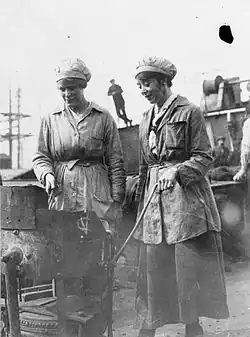 The Women's Peace Crusade was among the largest peace movements in Glasgow during the First World War, and it was also the one with the most working class, grassroots support.[8] Helen Crawfurd was one of the founders of the Women's Peace Crusade, and also founded the Glasgow branch of the Women's International League for Peace and Freedom, but later said that she was never a pacifist. Instead, she was 'an international socialist with a profound hatred of war with all its ghastly cruelty and waste'.[9] Fractions within the Glasgow branch of the Women's International League led to divisions between the middle class and working class members, and subsequently Helen Crawfurd, along with other working class members, formed the Women's Peace Crusade. These other members included Agnes Dollan, Miss Walker, Mrs Barbour and Mrs Ferguson.[7] While the Women's International League had focused on holding monthly meetings with speakers and discussions, the Women's Peace Crusade now took the anti-war message onto the streets and into working class communities.[10] Other notable members have included Helen Swanwick.[11]