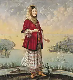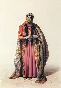 ![]() An Armenian woman from New Julfa in national costume. From The Costumes of Armenian Women by Gregory Lima (Tehran, 1974) | |