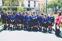 Girls traditionally have been less likely to be formally educated than men. Traditional gender roles lead women towards 'female jobs', such as nursing and teaching, which are underpaid and under-appreciated.[8] Women still have a lower literacy rate than men: as of 2022, the literacy rate in Ecuador was 93,95%, 93,05% female and 94,93% male.[19] In recent years, several programs have promoted education for the indigenous girls and women.[20]