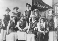Maud Wood Park was brought to Wisconsin in 1908 by Brown and spoke and helped set up suffrage groups at several colleges.[33] At the end of 1909, WWSA helped circulate a petition for a federal women's suffrage amendment.[33] Within six weeks, they had collected more than 18,000 signatures on the petitions.[33] One octogenarian, Mrs. Wentworth, collected 1,000 names herself.[33] Another women's suffrage organization, the Political Equality League (PEL), was formed in 1911 with Ada James as president.[47] This group was created by members who wanted a more active organization.[48] Youmans did public relations for PEL.[49]