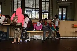 Civilian women and children have made up a large majority of those fleeing the war.[58][59][60] Men aged between 18 and 60 are forbidden to leave the country.[59] Julia Gris, the only woman rabbi in Ukraine, has been forced to leave the country due to the invasion.[61] Unaccompanied children also made up a portion of the refugees and due to initial patchy registration at border regions, many children's whereabouts are undocumented or untraceable. Attempts to lessen concerns and violence for refugees have been implemented by making volunteers show identification, document their actions and wear high visibility vests.[62] International efforts have also been seen, such as the Israeli "With You - Wherever You Go" task force to help and support women and children refugees, with social workers, psychiatrists, psychologists and medical professions who speak Ukrainian sent to border crossings.[63] Additionally grass root movements such as Women Take the Wheel (Kobiety za kółko) were created to transport refugees into mainland Poland. The organization is compromised entirely of women drivers for women and children refugees, with about 200 active drivers, and began after a Polish woman volunteer saw the distrust of refugees to male volunteer drivers when she arrived at the Dorohusk crossing.[64]