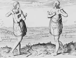 Conquest by and contact with Europeans brought extreme changes to all of the inhabitants of the Americas. Disease and a lack of immunity to African and European diseases killed more than 80% of the Native population of the Americas within the first two centuries of the Colonial period.[20] The main European groups which colonized and fought over control of the region included the Dutch, English, French, Portuguese, and Spanish.[21][22] They established economic systems which benefited themselves, taking land and resources, as well as requiring labor from native peoples or importing slaves.[20] Though bondage had existed among native cultures, captives or slaves were treated as pawns to be used in diplomatic relations, for resolving disputes, to right wrongs, or as punishment for crimes and often had multiple functions, as laborers, prisoners, or property. The majority of captives were women, as they could be used as negotiators and also to replenish declining populations of either their own culture or their captor's culture.[23] Though the result of the conquest varied because both the native cultures and the various European groups differed, male-female relationships were significantly altered by contact.[24] French, Portuguese and Spanish colonizers brought Catholic religious beliefs to Latin America and North America, which imposed the subordination of women to male authority and removed women from ceremonial rites.[25] Dutch and English colonizers brought predominantly Protestant indoctrination to native peoples with its male-dominated views of both gender roles and sexuality.[26]