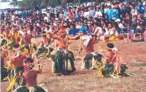 During the Yap Day festival in March, Micronesian women wear traditional costumes and perform traditional dances.