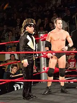 From years 2011 to 2015, ROH's female talent primarily consisted of female valets and interviewers although some female workers and wrestlers would compete in matches in the promotion.[9][10] During this time period women of ROH managed and accompanied male stars such as Michael Elgin, Mike Bennett, Matt Taven, Truth Martini, R.D. Evans, Moose, Cedric Alexander, Jay Lethal & Prince Nana were a part of stables such as The Kingdom, The House of Truth, Team RnB and The Briscoe Brothers that they also managed every now & then.[10][11][12][13][14][15][16][17][18]