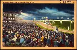 With the legalization of Parimutuel betting by the Massachusetts Legislature in 1934, the idea of Wonderland Greyhound Park was made a possibility. The track was constructed on the site of the former Wonderland Amusement Park in Revere, which had been converted from an amusement park to a bicycle track after the park closed in 1911.[1]