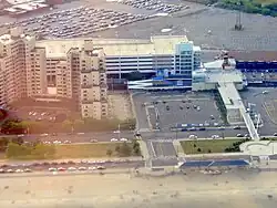 Construction began in September 2010; the new garage and busway opened on June 30, 2012.[3][26] The $53.5 million project was partially funded by the 2009 Stimulus Act.[3] The MBTA began work on an elevated plaza at the station and a footbridge over Ocean Avenue to Revere Beach in September 2011.[27] The $20 million project, including the Christina and John Markey Memorial Pedestrian Bridge opened on July 4, 2013.[28][29]