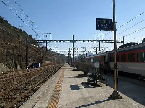 Wondong station is a railway station on the Gyeongbu Line in Won-ri, Wondong-myeon, Yangsan, South Gyeongsang, South Korea.[1]