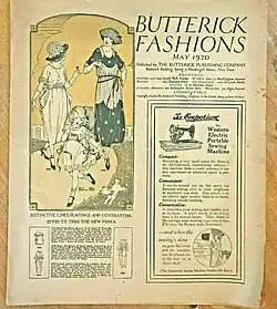 Throughout his career as an artist, Gaylor earned his living in New York's sewing pattern industry. He began in that business making line drawings like the one at left published in 1920 by Butterick's, the company where he first worked. By the 1940s, having become head of another firm, the New York Pattern Company, he oversaw the preparation of drawings such as the one shown at right. The figures in these pictures lack modeling. There is no shading and there are no shadows. They are flat, like paper dolls. These descriptors are the same as those used by critics to describe many of Gaylor's paintings. In 1930, a New York Times critic described the figures in his paintings as "flat like paper dolls, similar to pattern illustrations" and said they had the appearance of figures that had "been cut out of paper and pasted upon a flat ground".[4] In 1979, a Times critic described his paintings as "simple, charming figures and clean, unshaded colors". The critic added that the figures "are organized in meticulously orchestrated compositions that are clearly the work of a sophisticated hand" and described his style as "an alternative to both academic and abstract art".[3]
