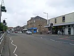 Main Street: Church of Scotland, Saint Vincent de Paul Catholic church, Library, Thorntree Hall, Thornliebank Health Centre and Thornliebank Bowling Club.