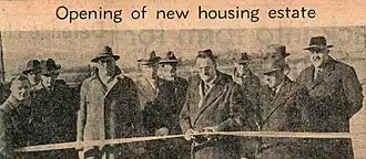 In 1947 168 acres of land including Woodhouse Close Farm was bought from the Ecclesiastical Commissioners, for £100,000 by Bishop Auckland Urban District Council they then spent £17,651 levelling the pit-heaps and filling in three pit-shafts. Construction of the first homes was delayed due to a shortage of cement and then again by a shortage of bricks. On 17 February 1951 six "permanent traditional type houses" were complete and the official opening was held at the Watling Road entrance to the estate. Streets were originally numbered but eventually were given names after local councillors.[4]
