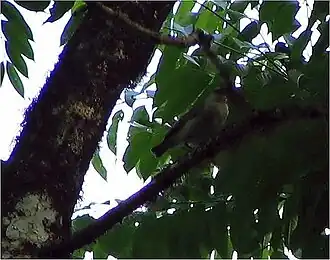 The woodpecker finch (Camarhynchus pallidus) is a monomorphic species of bird in the Darwin's finch group of the tanager family Thraupidae, endemic to the Galapagos Islands.[2] The diet of a woodpecker finch revolves mostly around invertebrates, but also encompasses a variety of seeds.[3][4] Woodpecker finches, like many other species of birds, form breeding pairs and care for young until they have fledged.[5] The most distinctive characteristic of woodpecker finches is their ability to use tools for foraging.[3] This behaviour indicates that they have highly specialized cognitive abilities.[6] Woodpecker finches have also shown the ability to learn new behaviours regarding tool use via social learning.[3] Not all populations of woodpecker finches use tools equally often, as this is influenced by the environment in which they live.[7]