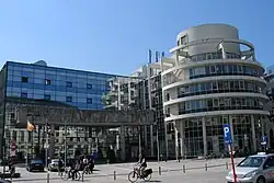 The Woodrow Wilsonplein is home to Ghent's largest shopping mall; Ghent South, which also serves as an office complex. On the south side of the square is the city's main administrative centre, the city library and a postal office. The Capitole, Ghent's largest theatre and event venue, is separated from the Woodrow Wilsonplein by the Graaf van Vlaanderenplein. The square borders the north side of the Zuidpark ("South Park"; not to be confused with the American adult animated series of the same name).