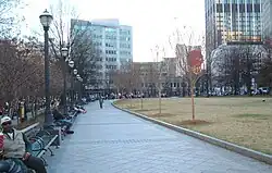 Wide sidewalk along the park's east side