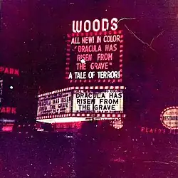 In its later years the quality of the venue declined. In 1982, the management had to pay for medical treatments when a patron was bitten by a rat during a show.[2] By 1988, the Woods had become the last of the Chicago Loop movie houses. It closed on January 8, 1989, after a screening of Hellbound: Hellraiser II.[3]