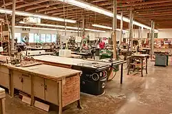 Woodshops are a woodworking workshop space dedicated to the processing, shaping, and assembly of wood into finished products or components. Woodshops can be found in schools, makerspaces, fab labs, flex spaces, homes,[1] garages,[2] community centers, and professional manufacturing environments. They typically include a combination of hand tools, power tools, and stationary machinery for cutting, shaping, joining, and finishing wood.[3][4][5]
