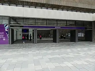 Woolwich railway station is an Elizabeth line station in Woolwich in London, England which opened on 24 May 2022,[3][4] and has up to 12 trains per hour to Canary Wharf and Central London.[3]