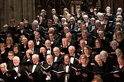 Worcester Festival Choral Society (WFCS) is an independent, SATB (soprano, alto, tenor, bass) choir of around 150 amateur singers that presents classical choral concerts at Worcester Cathedral, Worcester. The conductor is Samuel Hudson (Worcester Cathedral’s Director of Music)[1] and the accompanist is Nicholas Freestone (Worcester Cathedral’s Assistant Director of Music).[1] The Chairman is Susan White. The President is The Lord Bishop of Worcester and Senior Vice President is The Dean of Worcester.[2]