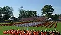 22,000 athletes and coaches from 56 countries took part in the opening ceremony.[2] The opening and closing ceremonies with a gymnastics show in the Birkenwiese Stadium each counted 30,000 spectators.[3]