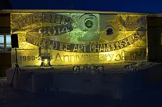 The World Ice Art Championships is an ice sculpting contest in Fairbanks, Alaska produced on by Ice Alaska, a non-profit corporation started in 1989. The contest is the largest of its kind in the world and attended by more than 100 sculptors from 30 countries every year.[1] The contest also draws tens of thousands of spectators; in 2004, 48,000 people from more than 28 countries passed through the park's gates.[2]