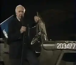 During the concert, Walter Cronkite narrated parts of history during and after the Second World War, in order to illustrate the historical meaning of the concert. During the concert Walter Cronkite was positioned at the side of the Rhine, in a military Jeep.