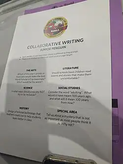 Each Regional Round consists of four main events: the Scholar's Challenge, Collaborative Writing, Team Debate, and the Scholar's Bowl.[5] In addition to these four events, non-competitive social activities take place in select tournaments. The academic activities each require knowledge of a curriculum made at the start of each season, which consists of questions about subjects like history, social studies, art and music, literature and media, science and technology, and a special area.