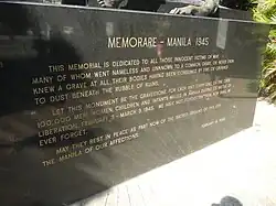 - ^ "Memorial Civilian Casualties Manila 'Memorare' Intramuros - Manila - TracesOfWar.com". www.tracesofwar.com. Retrieved May 16, 2023.