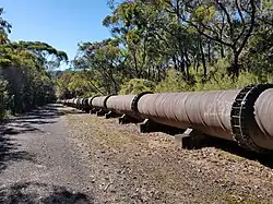 The use of a welded mild steel pipeline (the majority of the length of the pipeline is outside the scope of this report) to delivery the water to Penshurst is a first in New South Wales.[1]