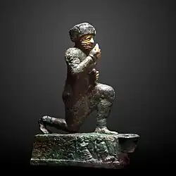 The Worshipper of Larsa is a Mesopotamian statuette on display in Room 227 at the Louvre Museum, of the paleo-Babylonian era (2004-1595 BCE). It depicts a bearded man, kneeling and performing a ritual gesture with his hand to his mouth. The statuette was dedicated to the god Amurru by an inhabitant of Larsa, in order to safeguard the life of King Hammurabi (reigned c. 1792 BC-1750 BC).