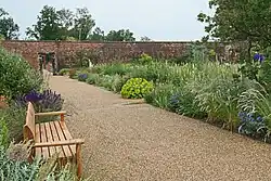 The new gardens are being designed by Tom Stuart-Smith. Initial plans include a new visitor building at the south end of the gardens; a new lake; a perennial meadow entrance garden set out as a web; a water garden; a new learning centre; and a café terrace. Additionally, the plans include the reconstruction of the walled garden, which will feature therapeutic, vegetable and flower gardens.[12] Terraces between the ornamental lake and the former hall will be reinstated,[7] as well as the tree-lined approach to the estate.[11]