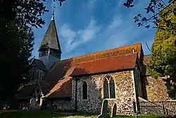 According to Hasted in the 18th century, Worth was made up of three boroughs, only one of which makes up the current village of the 21st century, Worth Street.[4] In the Gazetteer of the British Isles in 1887, John Bartholomew described Worth as coastal parish and village.[5] During the sixteenth century, the area was known for its redbrick style of housing, however the parish church of St Peter & St Paul's, depicted on the left, shows the signs of Norman work from the twelfth century.[6]