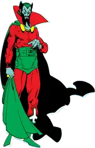 Wotan is a supervillain featured in American comic books published by DC Comics. The character, created by Gardner Fox and Howard Sherman, made their first appearance in More Fun Comics #55 in 1940. Wotan is frequently a principal adversary of Doctor Fate. Like his archnemesis, Wotan possess powers that have allowed him to adopt various different incarnations. In his original form, Wotan was a woman of a pre-historic tribe in ancient Scandinavia subjected to sexual assault and nearly beaten to death by male tribe members. Learning sorcery soon after to gain power, she became worshipped akin to a goddess and sought immortality, resulting in her learning to control her own reincarnation cycle with her memories intact. Adopting various forms over the millennia both male and female of varying origins, he eventually settled on the name "Wotan" and pursued more power, eventually bringing him into conflict with Doctor Fate in the 20th century.[1][2]