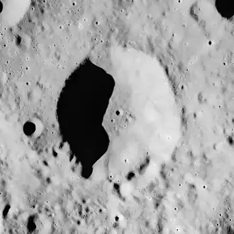 Wróblewski is a small lunar impact crater located just southeast of the large walled plain Gagarin on the far side of the Moon. The crater Raspletin lies along the rim of Gagarin, just to the northwest of Wróblewski, while Sierpiński is situated to the south-southeast.