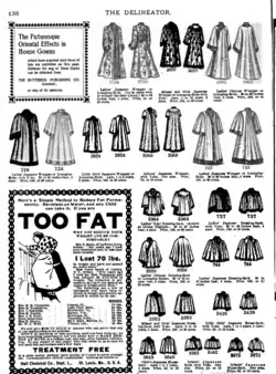 European clothing with wrap-style closure were heavily influenced by the popularity of Orientalism in the 19th century.[2][note 4] In the 20th century, Chinoiserie in fashion gained popularity and impacted many fashion designers of the time, including fashion designed based in the United States. According to the Ladies’ Home Journal of June 1913, volume 30, issue 6: