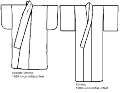 Wrap-style garments which were tied with sash have very ancient origins in China and were later introduced in Japan influencing the design of the kimono.[5]: 122 The kimono originated from the Chinese jiaoling pao, which gained popularity in the 8th-century Japanese court.[6]