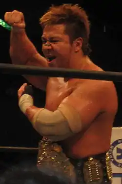 In addition, the event included two interpromotional matches between NJPW and Pro Wrestling Noah. In the first, Noah's Takashi Sugiura and Yoshihiro Takayama defeated Hirooki Goto and Kazuchika Okada.[1] This match was a one night NJPW return for Okada, who afterwards returned to TNA to continue his overseas learning excursion.[8] In the second match, NJPW's Shinsuke Nakamura defeated Noah's Go Shiozaki.[2]
