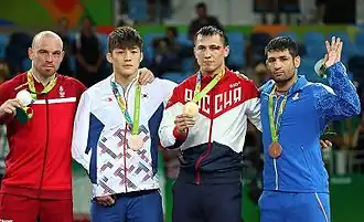 Men's Greco-Roman 75 kilograms competition at the 2016 Summer Olympics in Rio de Janeiro, Brazil took place on August 14 at the Carioca Arena 2 in Barra da Tijuca.[1]
