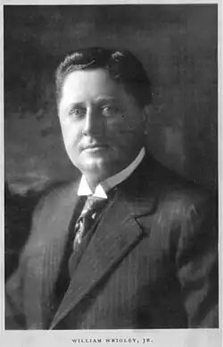 In 1891, 29-year-old William Wrigley Jr. (1861–1932) came to Chicago from Philadelphia with $32 and the idea to start a business selling Wrigley's Scouring Soap.[21] Wrigley offered premiums as an incentive to buy his soap, such as baking powder. Later in his career, he switched to the baking powder business, in which he began offering two packages of chewing gum for each purchase of a can of baking powder. The popular premium, chewing gum, began to seem more promising, prompting another switch in product focus. Wrigley also became the majority owner of the Chicago Cubs in 1921.