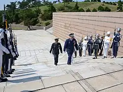 The Wuzhi Mountain Military Cemetery (Chinese: 五指山國軍示範公墓; pinyin: Wǔzhǐ Shān Guójūn Shìfàn Gōngmù, sometimes romanized as Wuchih) is Taiwan's most prominent military cemetery. The cemetery is located on Wuzhi Mountain (五指山) at an elevation of 699 metres (2,293 ft)[2] in Xizhi, New Taipei City and borders Taipei City's Neihu District and Yangmingshan National Park. The cemetery has a wide open view ranging from the Taipei 101 over at Taipei's Xinyi District to the Keelung Harbor.[2]