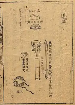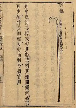 The Wubei Zhi (Chinese: 武備志; Treatise on Armament Technology or Records of Armaments and Military Provisions), also commonly known by its Japanese translated name Bubishi,[1][2][3] is a military book in Chinese history. It was compiled in 1621 by Mao Yuanyi (茅元儀 Máo Yuányí; 1594–1640?), an officer of waterborne troops in the Ming dynasty. The Wubei Zhi contains 240 volumes, 10,405 pages, and more than 200,000 Chinese characters.