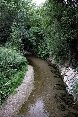 The river springs near Forchtenstein and the border to Lower Austria.[2] It flows through Trausdorf an der Wulka[3] and discharges near Donnerskirchen into Lake Neusiedl,[4] in former times a runoff-free lake, but nowadays drained by an artificial channel, the Hanság-főcsatorna, into the Danube.