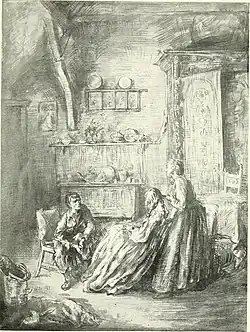 Wuthering Heights is a fictional location in Emily Brontë's 1847 novel of the same name. A dark and unsightly place, it is the focus of much of the hateful turmoil for which the novel is renowned. It is most commonly associated with Heathcliff, the novel's primary male protagonist, who, through his devious machinations, eventually comes into ownership both of it and of Thrushcross Grange. Although the latter is by most accounts a far happier place, Heathcliff chooses to remain in the gloom of the Heights, a home far more amenable to his character.