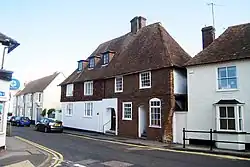 Wye became an important communications centre because of a ford across the River Great Stour connecting with ancient trackways across the North Downs. Romans constructed a road between Canterbury and Hastings using the gap through the North Downs and there have been suggestions the straight Olantigh Road may have been built by them as a separate route from Wye to Canterbury on the east of the River Stour. Remains of an ironworks at the west bank of the river, from that period, have been found. By medieval times, Wye had a market and hosted the local hundred court.[5][6]