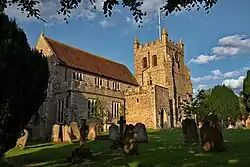 The present Anglican Church of Saint Gregory and Saint Martin at the junction of High Street, Church Street and Churchfield Way is grade I listed. Its original dedication was solely to Pope Gregory the Great. Saint Martin was added c. 1475, possibly to recognise the role of Battle Abbey which was itself dedicated to Saint Martin and owned the Manor of Wye, and to be consistent with Wye College.[34][15]