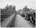 At the southern, Wyesham, end of the bridge, and now largely concealed by road-widening, are two pillboxes dating from World War II.[7] Such pillboxes formed part of the British hardened field defences which were constructed in the early part of the war in anticipation of a German invasion. The Wye Bridge pillboxes formed part of Western Command Stop Line No. 27 which followed the course of the River Wye. The pillboxes are scheduled monuments.[8]