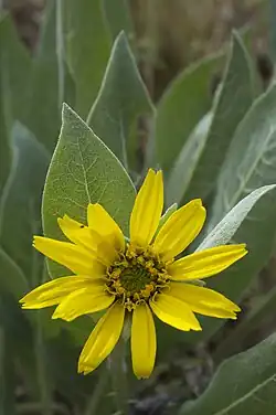 Wyethia helenioides is a species of flowering plants in the family Asteraceae[4] commonly referred to as gray mule's ears or whitehead mule-ears.
