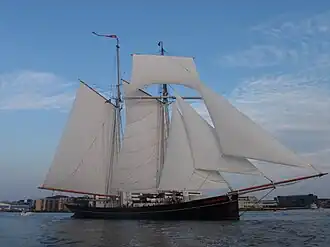 Wylde Swan (West Frisian for "Wild Swan") is a fast sailing vessel originally built in Germany in 1920 as a steam ship.[1] She was designed to work with the German herring fleet, collecting the herring at sea and transporting the fish to market at speed to get the best price. To maximise speed she was built long and narrow, and in keeping with her day had a vertical stem and counter stern.[2]