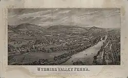 The name "Wyoming" derives from the Munsee word xwé:wamənk, meaning "at the big river flat".[5] The state of Wyoming is either named after this borough or the surrounding valley.