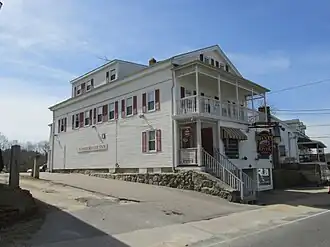 The Wyoming Village Historic District is a historic district roughly bounded by Rhode Island Routes 138 and 3, Old Nooseneck Hill Road, Bridge and Prospect Streets in Richmond. The district, which includes Brand's Ironworks, includes examples of Greek Revival, Late Victorian, and Federal architecture and was added to the National Register of Historic Places in 1974.[1] Prospect Street on the Hopkinton side of the river is a residential neighborhood that grew up in the mid-19th century in connection with the growth of the textile industry in Wyoming; it includes several Greek Revival houses built between 1846 and 1850.[3] The historic district covers properties in both the towns of Richmond and Hopkinton, with a total area of 570 acres (230 ha), almost one square mile.[1]