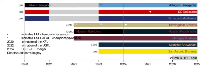 - ^ Schad, Tom (September 28, 2023). "XFL, USFL confirm intention to merge into single spring football league". USA Today. Retrieved September 29, 2023.